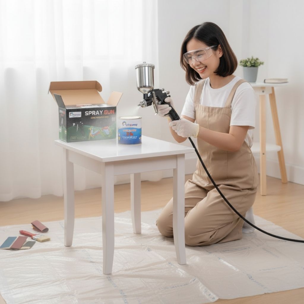 Đúng khoảng cách: Giữ súng cách bề mặt 20–25 cm để tia sơn phân tán đều.