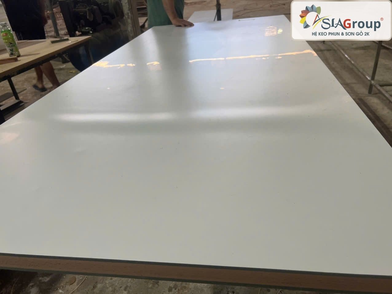 - Yêu cầu độ phẳng tuyệt đối: Tấm Laminate và Veneer rất mỏng, bất kỳ sự không đồng đều nào của lớp keo nền (dù chỉ là một hạt keo vón cục hay vệt keo dày) sẽ ngay lập tức hiện rõ trên bề mặt hoàn thiện, tạo ra hiện tượng gợn sóng, phồng rộp, phá hỏng toàn bộ giá trị thẩm mỹ.