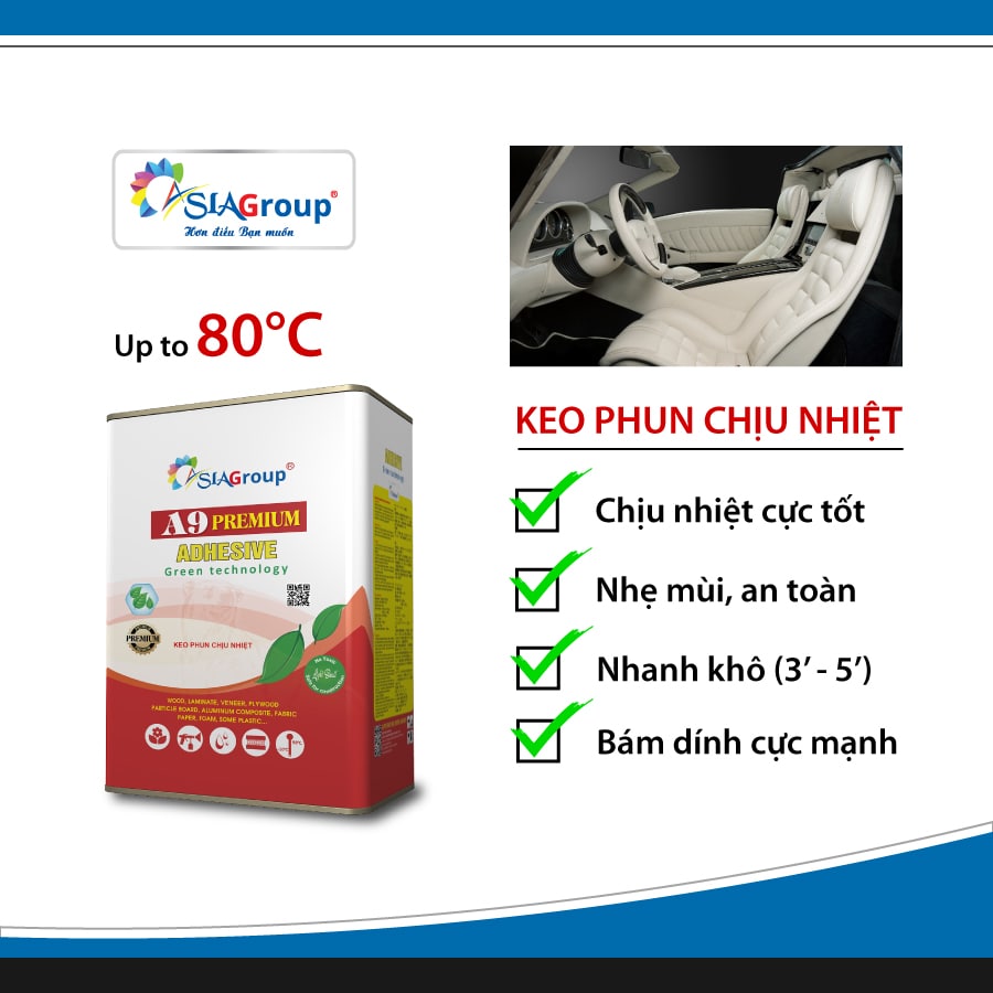 Bằng nhiều năm kinh nghiệm trong nghề cũng như trải qua nhiều đợt đánh giá kiểm định nghiêm ngặt của quốc tế, nếu bạn đang tìm một giải pháp toàn diện để dán các bề mặt, bạn có thể tham khảo qua sản phẩm ASIA A9 Premium. Sản phẩm này giải quyết được nhiều vấn đề cốt lõi: khả năng chịu nhiệt lên đến 80°C, độ bám dính ban đầu cực nhanh và thời gian chờ tối ưu, giúp giảm thiểu lỗi thi công và đảm bảo độ bền vượt trội cho các ứng dụng khắc nghiệt nhất như nội thất ô tô và tủ bếp.