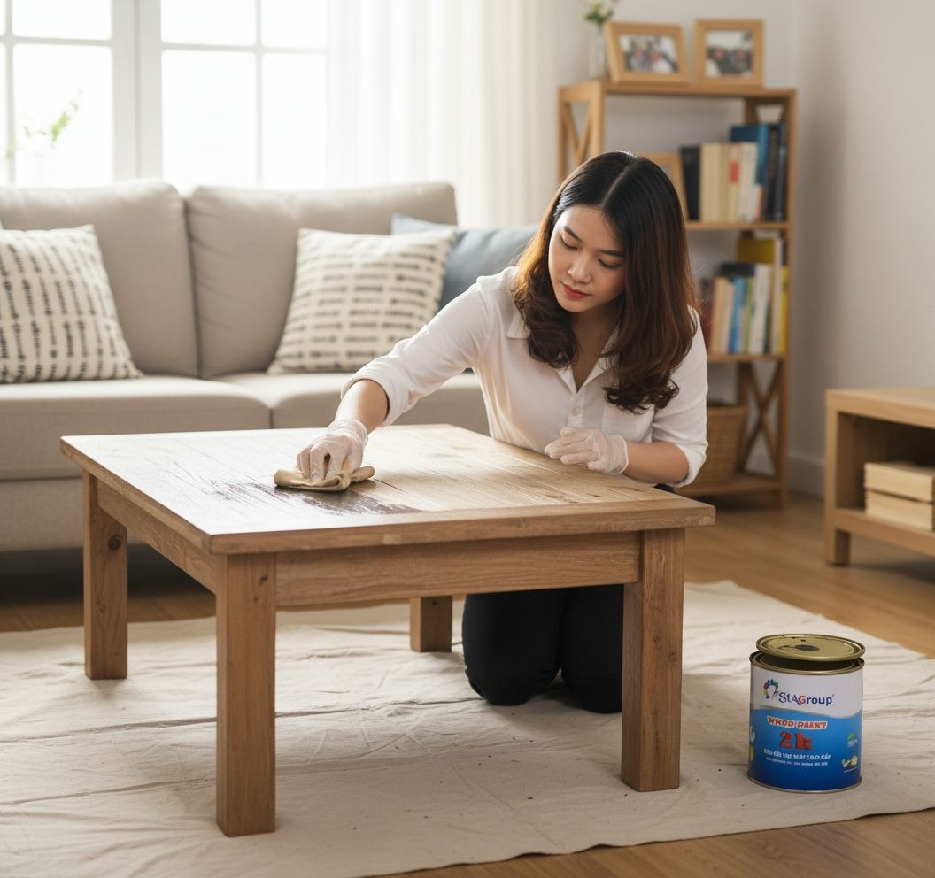 Nếu đồ gỗ chỉ bị bám bụi, ố nhẹ hoặc mờ bóng, bạn chỉ cần bảo dưỡng định kỳ mà chưa cần phục chế đồ gỗ cũ. Mục tiêu của giai đoạn này là làm sạch và trả lại độ bóng tự nhiên, không can thiệp sâu vào lớp sơn.