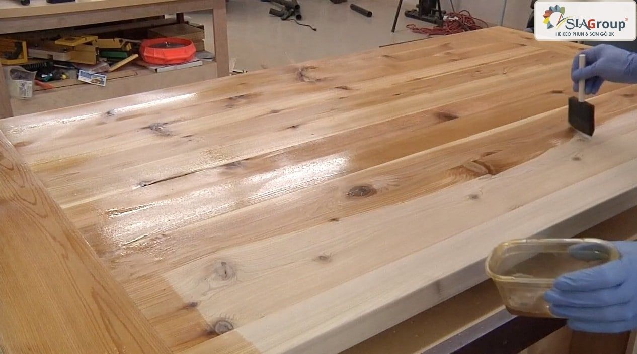 Mẹo chuyên gia: Pha thêm một chút dầu thông hoặc dầu lanh vào vecni để tăng độ mịn và hạn chế vệt quét.