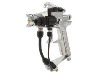 Bạn có thể đã nghe về “súng phun sơn 2 đầu” và lầm tưởng đây là thiết bị dành cho sơn 2K. Thực tế, đây là một thiết bị siêu chuyên dụng, nơi hai loại hóa chất được dẫn vào súng bằng hai đường riêng biệt và chỉ được trộn với nhau BÊN NGOÀI súng, sau khi đã phun ra khỏi đầu béc.