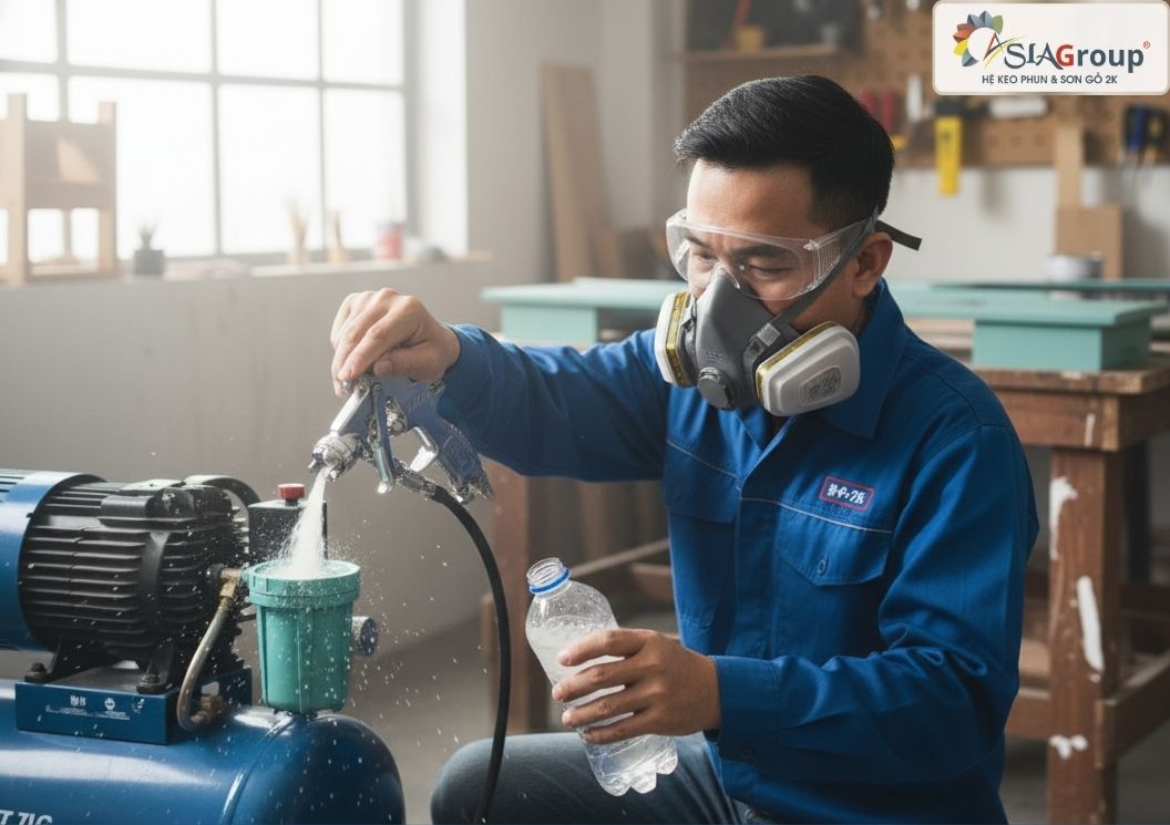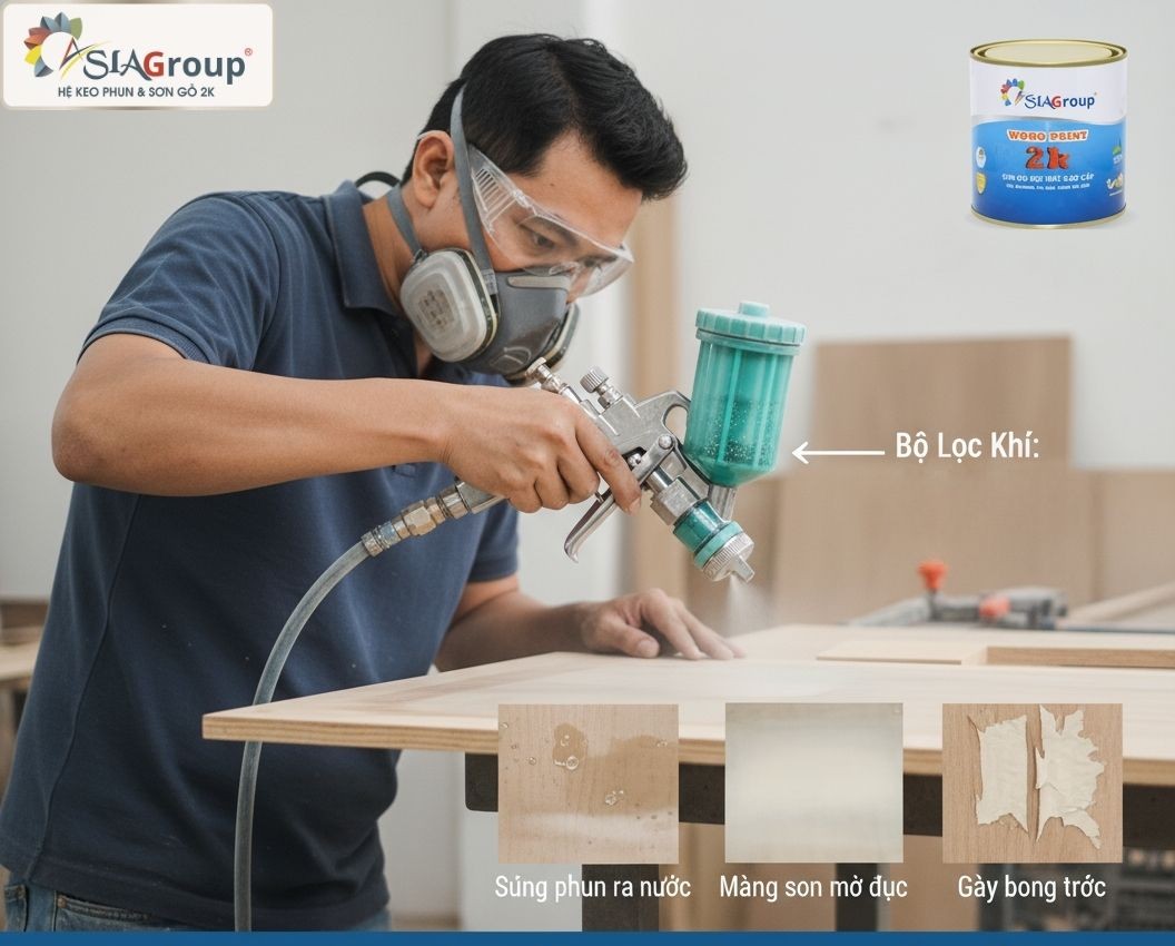 Đã bao giờ bạn dồn hết tâm huyết để chuẩn bị một bề mặt gỗ hoàn hảo, lựa chọn loại sơn PU cao cấp nhất, nhưng rồi thành phẩm cuối cùng lại xuất hiện những lỗi “trên trời rơi xuống” như những đốm mắt cá li ti, bề mặt sần sùi hay những vệt loang màu khó hiểu? Sự thất vọng này là nỗi ám ảnh của không ít người thợ sơn, từ chuyên nghiệp đến nghiệp dư. Thủ phạm thường không nằm ở kỹ thuật của bạn hay chất lượng sơn, mà đến từ một yếu tố vô hình ít ai ngờ tới: khí nén bị nhiễm bẩn.