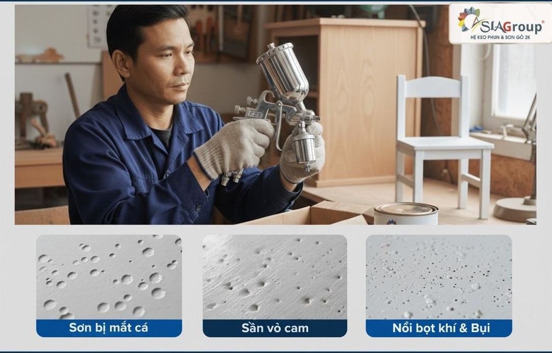 Lỗi do Dầu & Tạp chất (Sơn bị mắt cá, sần vỏ cam, nổi bọt khí)